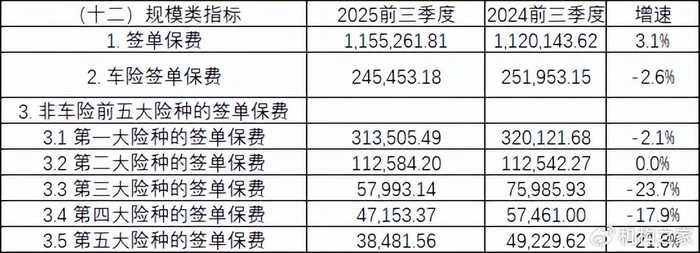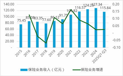 从业务结构看,公司正主动或被动地向非车险倾斜。2025年前三季度,车险签单保费24.55亿元,同比下滑2.6%;非车险则增长4.8%,达到90.98亿元。