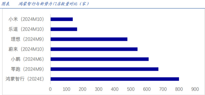 预计2024年,鸿蒙智行门店数量突破800家,2025年突破1000家,超过理想、蔚蓝、小米等一众新势力车企,渠道铺设能力遥遥领先。