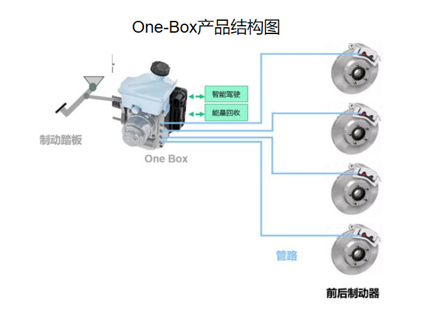 简单来说,One-Box就是把ABS、ESC等多个部件的功能集成到一个模块里,组装成一个“超级刹车系统”。该系统不仅可以提升智驾系统的反应速度,还能在刹车时回收能量,转化为电能储存到电池中,提高汽车续航能力。