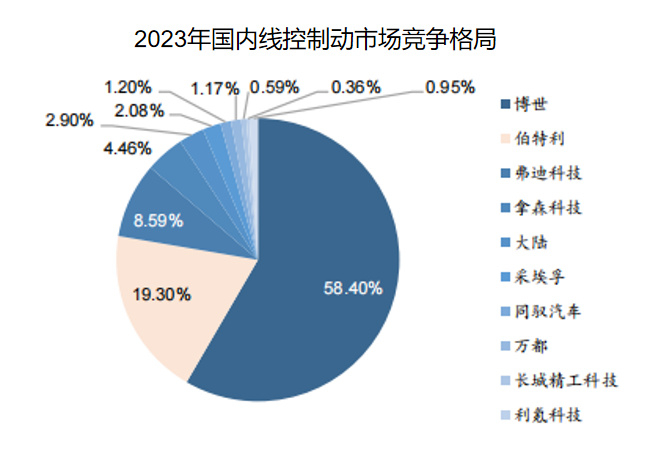 2020到2023年,在国内线控制动市场中,伯特利市场份额从13%提高到19%,远远领先弗迪科技(比亚迪子公司)和拿森科技等同行业公司。
