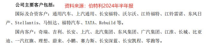 目前,公司客户不仅包括奇瑞、比亚迪、赛力斯等国内车企,还包括特斯拉、通用汽车、沃尔沃等国际及合资品牌。