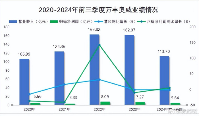2020到2023年,万丰奥威营收从106.99亿增长到162.07亿,净利润从5.66亿增长到7.27亿。2024年前三季度,公司业绩依旧很稳,当期实现净利润5.64亿,同比增长5.07%。