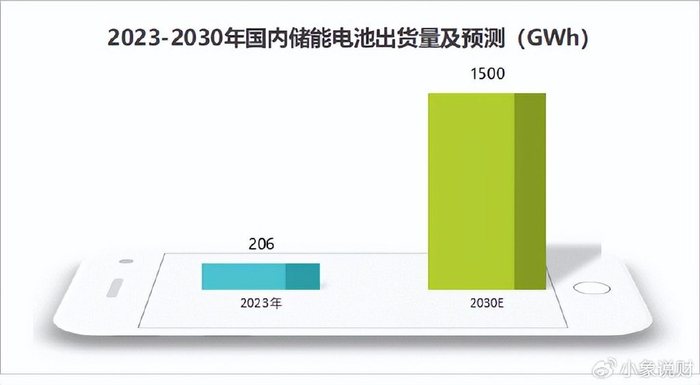 预计2023到2030年,国内储能电池出货量将从206GWh快速增长到1500GWh,年复合增长率高达33%。
