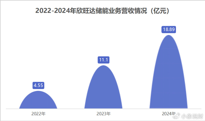 2024年,公司储能系统装机量达到8.88GWh,同比增长107%。从营收情况来看,2022到2024年,欣旺达储能业务营收从4.55亿元增长到18.89亿元,年复合增速为103.76%。