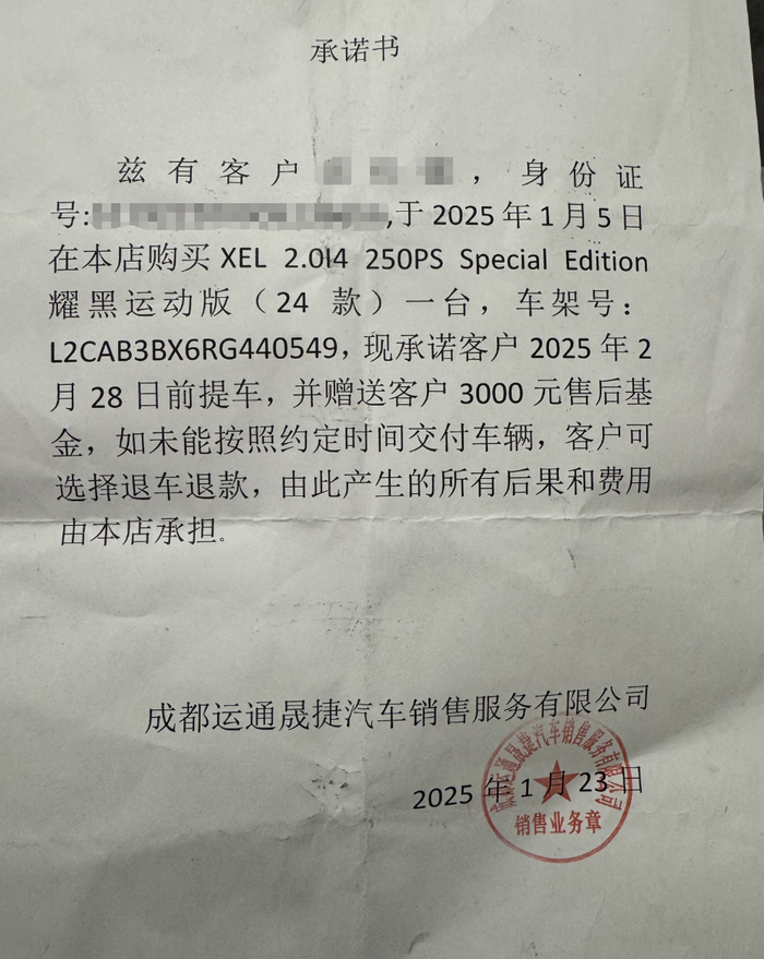 当询问无法提车的具体原因时,岳先生从销售人员处了解到,新车的合格证被4S店抵押给了银行,需要集团放款才能解除抵押。然而,由于当前店内资金链紧张,集团并未有任何放款的消息,导致合格证无法赎回,车辆因此迟迟不能交付。