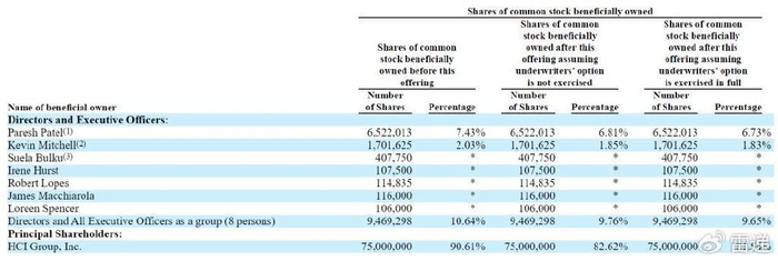 IPO后,HCI集团将保留81.5%股份,Paresh Patel持股为6.73%,Kevin Mitchell持股为1.83%。