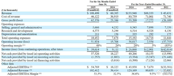 Exzeo在2025年上半年营收为1.08亿美元,上年同期的营收为6031万美元;运营利润为5192万美元,上年同期的运营利润为1571万美元;运营利润率为48%。
