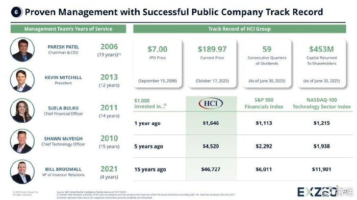IPO前,Exzeo的母公司HCI集团持股为90.61%,Paresh Patel持股为7.43%,Kevin Mitchell持股为2.03%;