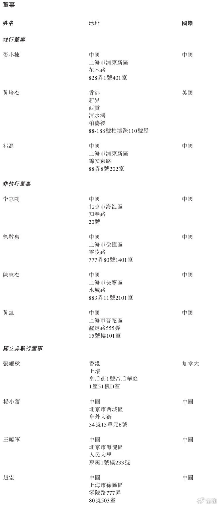 镁信健康执行董事张小栋、黄培杰、祁磊,非执行董事分别为李志刚、徐敬惠、陈志杰、黄凯,独立非执行董事分别为张耀梁、杨小蕾、王晓军、赵宏。