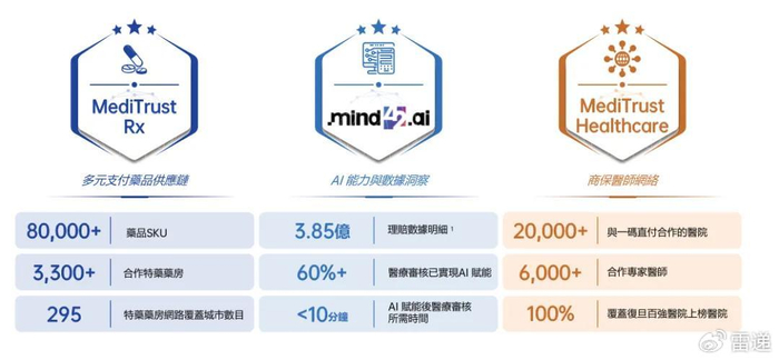 为进一步支持公司业务发展,镁信健康打造三大功能:mind42.ai是自研AI中枢,通过利用积累的行业数据和可行的见解;MediTrust Rx整合医疗供应链解决方案;及MediTrust Healthcare,为患者优化诊疗流程,提供更优质的医疗健康服务,降低医药相关的管理和运营成本。