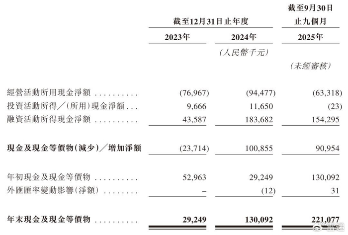 截至2025年9月30日,迦智科技持有的现金及现金等价物为2.21亿元。