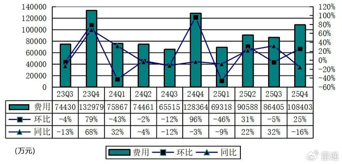 其中,逸仙电商2025年第四季度履约成本为7703万元,销售与市场费用为8.94亿元,管理费用为7444万元,研发费用为3879万元。逸仙电商上年同期有4亿元的商誉减值,这个季度并未此项开支。