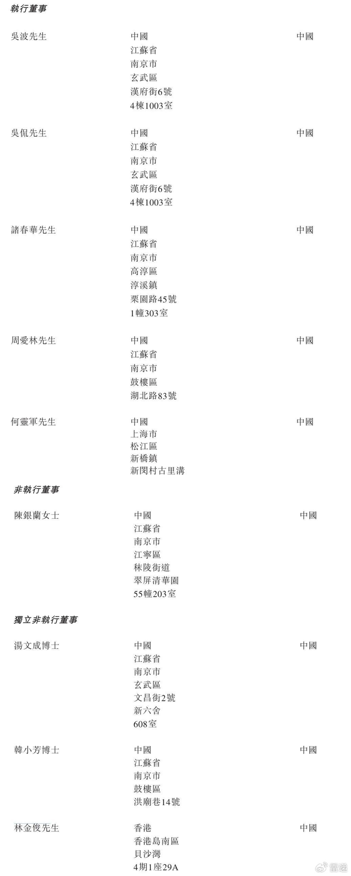 埃斯顿执行董事分别为吴波、吴侃、诸春华、何灵军;非执行董事为陈银兰女士,独立非执行董事分别为汤文成博士、韩小芳博士、林金俊。