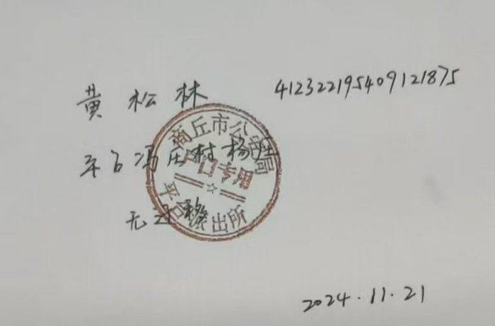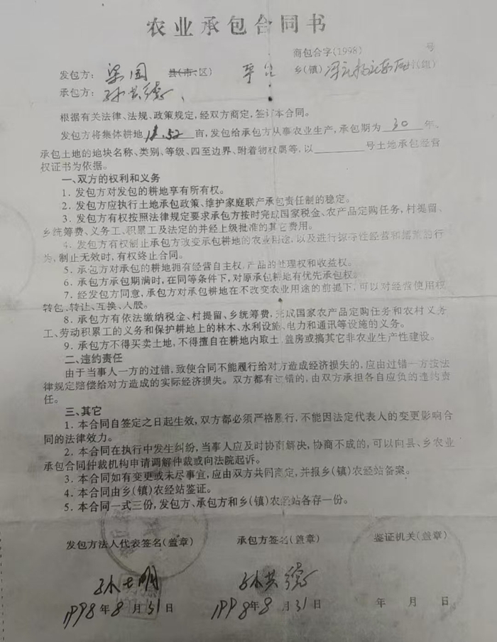 为获得该笔补偿款,黄某松在亲朋片区负责人和冯庄村孙某合的操作支持下,开始涉嫌对自己及女儿等人的户籍、1998年土地延包合同等关键证据进行完善造假。