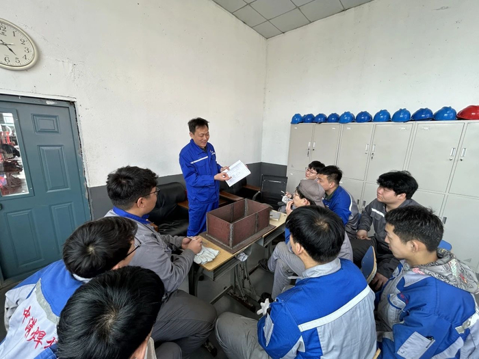 朱先波大师站在学生们中间,身着蓝色的工作服,脸上带着亲切的笑容。他的眼神专注而温和,透露出对焊接工艺的深厚理解和热爱。同学们聚精会神地听着,不时点头或在本子上记录。他详细解释每个符号和线条的含义,从焊接方法、材料选择到焊接顺序,每一个细节都不放过。他还会结合自己多年的实践经验,分享一些图纸上没有标注但实际操作中非常重要的技巧。