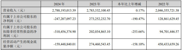 上市以来最大亏损!2024年,冰川网络(300533)营业收入为27.88亿元,同比增长0.17%;扣除非经常性损益后归属于母公司股东的净利润为-3.10亿元,同比增长-253.66%。