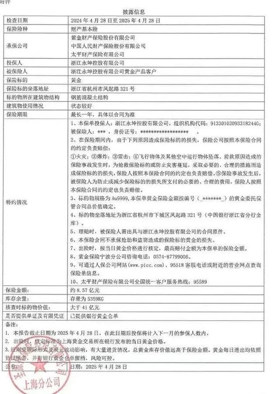 据警方通报,永坤控股自2014年成立后,通过线上线下双渠道推行“黄金托管”业务。线上依托“永坤商城”平台,以“预定金条”为噱头,向投资者承诺“金价上涨赚差价、下跌原价退款”,还附赠积分;线下门店则以实物黄金托管为由,与客户签订年化收益5%-9%的回购合同。为骗取投资者信任,公司宣称与工商银行、上海黄金交易所达成战略合作,甚至出具虚假保单,谎称在中国银行浙江分行金库存有5359公斤黄金,但实际承保资产不足2亿元,且保单仅覆盖火灾等物理损失,与经营风险毫无关联。