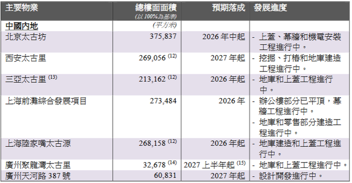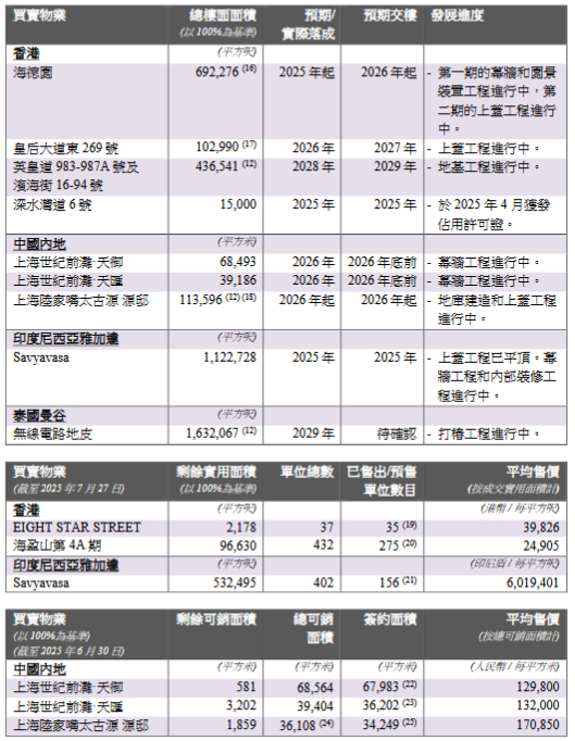 发展中的投资物业及酒店具体情况如下: