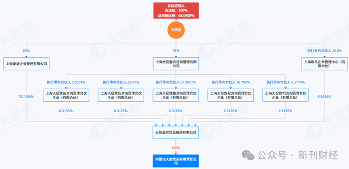 从股权穿透来看,即将注销的内蒙古大窑饮品有限责任公司,其最终控制权高度集中于创始人王庆东手中,其通过上海蒙清企业管理有限公司等主体的多层持股,个人权益占比达68.04%。