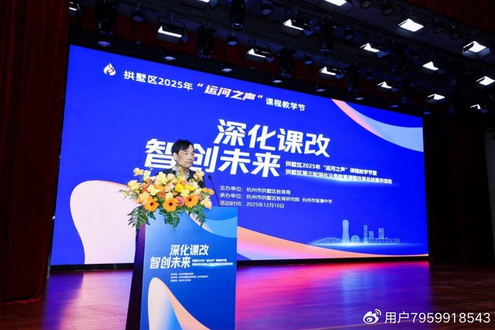 2025年12月10日,由杭州市拱墅区教育局主办,杭州市拱墅区教育研究院、杭州市慧澜中学承办的拱墅区2025年“运河之声”课程教学节开幕式暨第三轮深化义务教育课程改革总结展示研讨活动顺利召开。本次活动以“深化课改 智创未来”为主题,全面展现拱墅区中小学在课程改革与智慧教育融合方面的探索与实践。