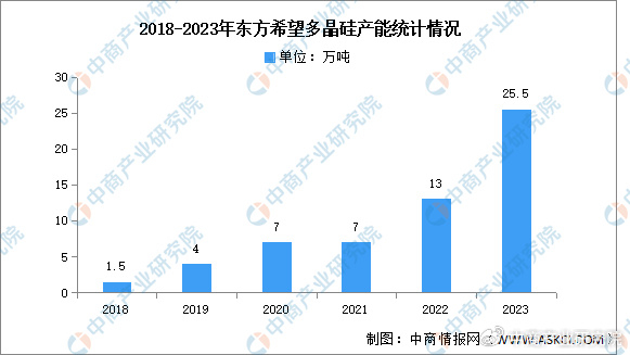 近年来,东方希望多晶硅产能保持增长,2022年东方希望产能达13万吨,同比增长85.7%,2023年产能约为25.5万吨。