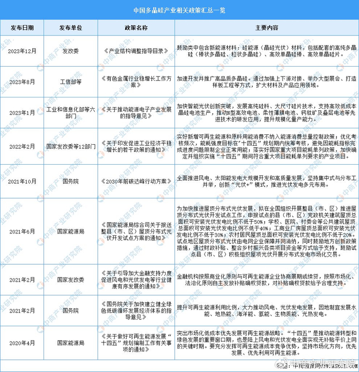 更多资料请参考中商产业研究院发布的《中国多晶硅行业市场前景及投资机会研究报告》,同时中商产业研究院还提供产业大数据、产业情报、行业研究报告、行业白皮书、行业地位证明、可行性研究报告、产业规划、产业链招商图谱、产业招商指引、产业链招商考察&推介会、“十五五”规划等咨询服务。