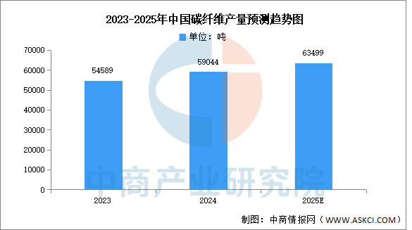 近年来,中国碳纤维产量呈现逐年上涨的趋势。中商产业研究院发布的《2025-2030年中国碳纤维行业市场调查与投资前景研究报告》显示,2024年中国碳纤维产量59044吨,同比增长8.16%。中商产业研究院分析师预测,2025年中国碳纤维产量将达到63499吨。