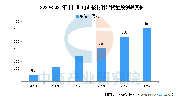 中商情报网讯:随着新能源汽车、智能手机等电子产品的普及,锂电池正极材料的市场需求持续增长。中商产业研究院发布的《2025-2030年中国电池正极材料行业前景与市场趋势洞察专题研究报告》显示,2024年中国正极材料出货量335万吨,同比增长35%。中商产业研究院分析师预测,2025年中国正极材料出货量将超过400万吨。