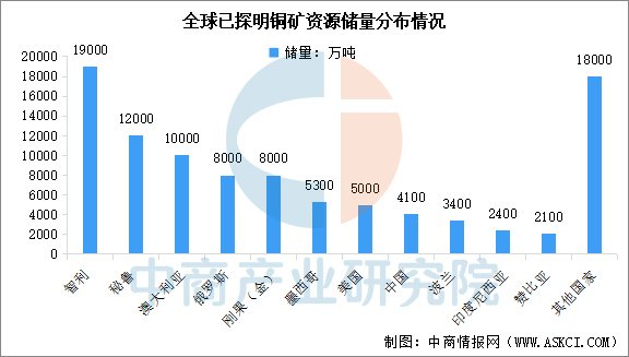 全球铜资源丰富,集中度较高。中商产业研究院发布的《2025-2030年中国铜产业市场深度分析及发展趋势预测报告》显示,截至2023年,全球已探明铜矿资源储量10亿吨,主要分布在智利、澳大利亚、秘鲁、俄罗斯、刚果(金)等国家,五大资源国控制了全球约 57%的铜矿资源量。中国储量4100万吨,仅占全球4%,却是全球最大的铜消费国,约占全球消费量的一半。