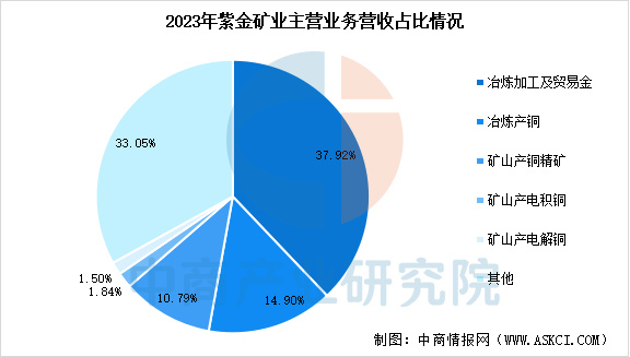 分产品来看,2023年公司主营业务中,加工、冶炼及贸易金收入1013.68亿元,占营业收入的34.55%;冶炼铜收入431.15亿元,占营业收入的14.69%。