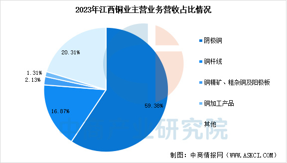 分产品来看,2023年公司主营业务中,阴极铜收入1135亿元,占营业收入的77.20%。