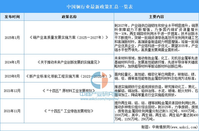 更多资料请参考中商产业研究院发布的《中国铜行业市场前景及投资机会研究报告》,同时中商产业研究院还提供产业大数据、产业情报、行业研究报告、行业白皮书、行业地位证明、可行性研究报告、产业规划、产业链招商图谱、产业招商指引、产业链招商考察&推介会、“十五五”规划等咨询服务。