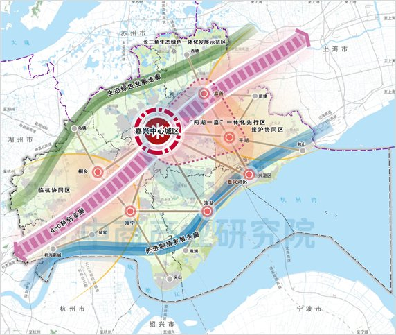 嘉兴市构建“一核引领、三廊提升、一体发展”的产业空间总体格局。