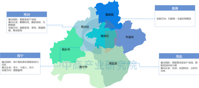 嘉兴市智能家居产业布局于秀洲、海宁、嘉善、海盐等,主要发展家居原材料、核心零部件、产品集成等。