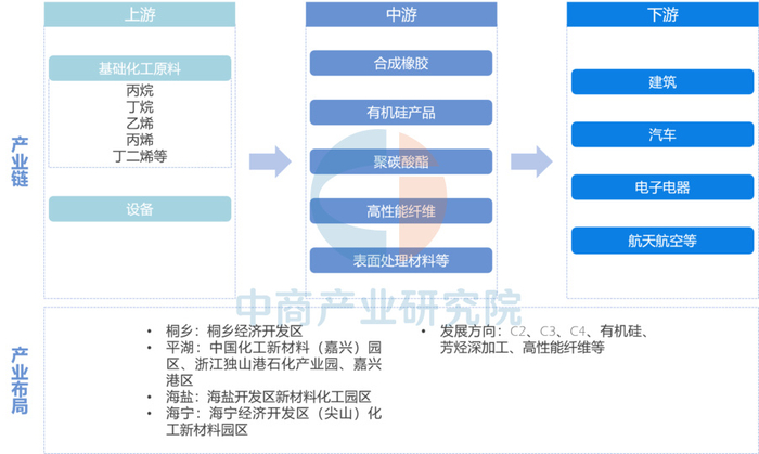 嘉兴市化工新材料产业聚焦C2、C3、C4产业链、有机硅材料、芳烃深加工产品以及高性能纤维材料等重点领域展开深入发展,精准落位于桐乡、海宁、平湖、海盐等地,充分发挥各区域的资源优势与产业基础,构建协同发展的化工新材料产业格局。
