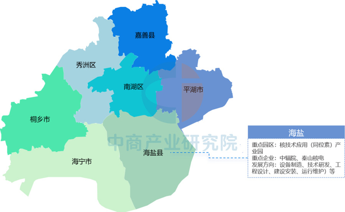 嘉兴市核电关联及核技术产业集中在海盐,在设备制造、技术研发、工程设计等核心领域深度耕耘,覆盖建设安装、运行维护等全生命周期环节,拓展延寿退役、教育培训等配套服务,推进核能综合开发与核技术(同位素)应用。