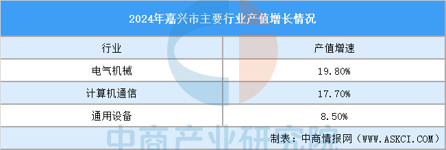 2024年,嘉兴市规上工业增加值2920.15亿元,比上年增长7.1%。全市33个工业行业大类中,24个行业增加值同比正增长,增长面超七成;其中,电气机械、计算机通信和通用设备行业增加值保持较快增长,三大行业合计拉动规上工业增加值增速5.0个百分点。