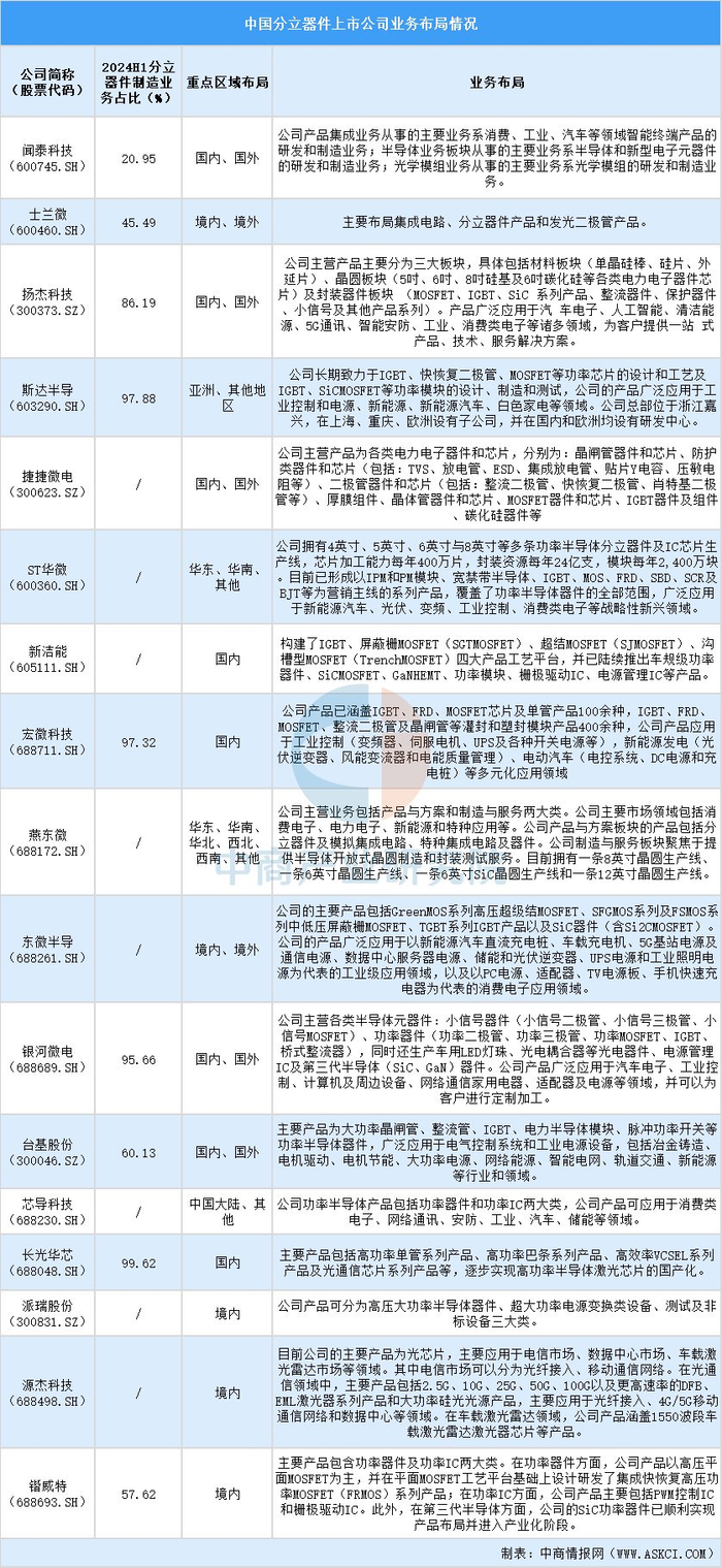 四、 中国分立器件行业上市公司业务布局情况