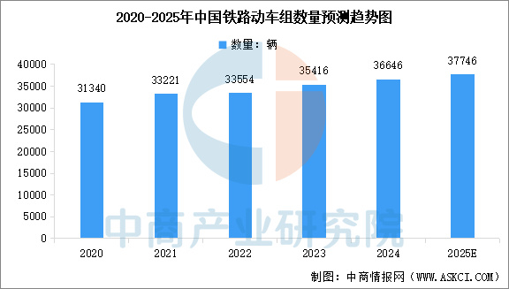 动车组作为轨道交通装备的重要组成部分,在技术上已经实现了从引进到自主创新的跨越,成为中国轨道交通发展的一个缩影。随着技术的发展,动车组向着智能化、轻量化方向进步,安全和环保性能不断优化。中商产业研究院发布的《2025-2030年中国轨道交通装备行业市场前景预测及未来发展趋势研究报告》显示,2023年全国拥有铁路客车7.8万辆、增加0.1万辆,其中动车组4427标准组、35416辆,分别增加209标准组、1674辆。中商产业研究院分析师预测,2025年我国铁路动车组数量将达37746辆。
