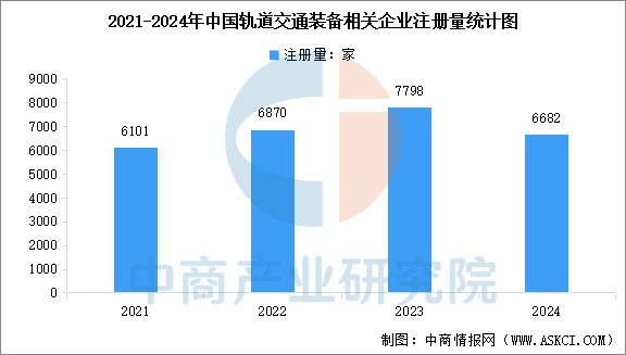 轨道交通装备产业链上涉及众多企业,随着行业的发展,产业链的聚集度将不断提高,形成产业集群。截至2025年3月底,我国轨道交通装备相关企业注册总量达到4.46万家。从历年企业注册情况来看,2023年注册量最高,达到7798家。2024年企业注册量为6682家。