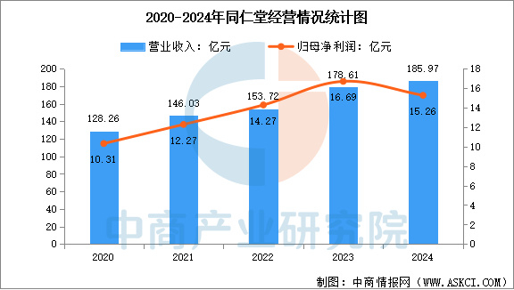 北京同仁堂股份有限公司主营业务为中成药的生产与销售,拥有包括中药材种植、中药材加工、中成药研发、中成药生产、医药物流配送、药品批发和零售在内的完整产业链条。公司常年生产的中成药超过400个品规,产品剂型丰富,覆盖内科、外科、妇科、儿科等类别,以安宫牛黄丸、同仁牛黄清心丸、同仁大活络丸、六味地黄丸,金匮肾气丸为代表的产品以及众多经典药品家喻户晓。2024年,公司实现营业收入185.97亿元,同比增长4.12%,实现归母净利润15.26亿元,同比下降8.54%。