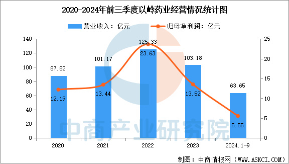 石家庄以岭药业股份有限公司主营业务是专利创新中药的研发、生产和销售。在开展创新中药研发的同时,公司积极布局化生药和健康产业,构建了专利中药、化生药、健康产业协同发展、相互促进的医药健康产业格局。2024年前三季度,公司营业收入为63.65亿元,同比下降25.76%,归母净利润为5.55亿元,同比下降68.46%。