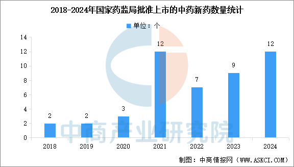 中商产业研究院发布的《2025-2030年中国中医药市场需求预测及发展趋势前瞻报告》显示,我国在推动中药新药研发方面取得了显著进展,中药新药上市不断加快。2024年度受理中药临床试验申请共100件,新药申请40件,全年共批准12个中药新药上市。2025年以来,已经有8个中药新药获准上市,与去年同期相比有较大幅度增加。