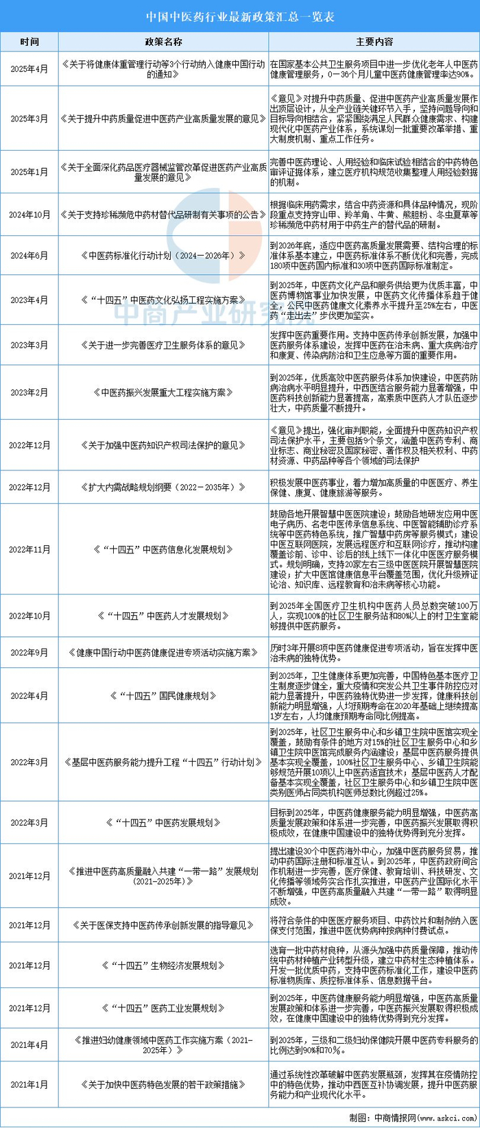 更多资料请参考中商产业研究院发布的《2025-2030年中国中医药市场调研及投资战略咨询报告》,同时中商产业研究院还提供产业大数据、产业情报、行业研究报告、行业白皮书、行业地位证明、可行性研究报告、产业规划、产业链招商图谱、产业招商指引、产业链招商考察&推介会、“十五五”规划等咨询服务。