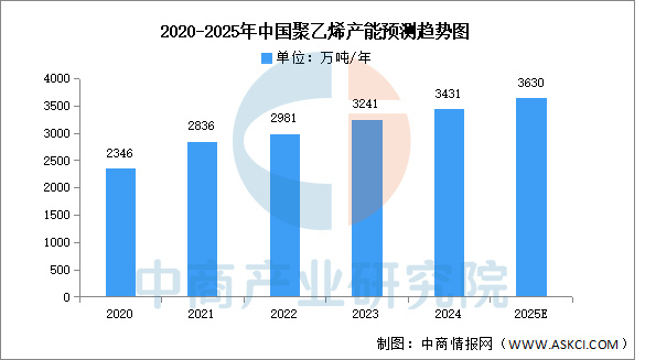 中商产业研究院发布的《2025-2030年中国聚乙烯行业市场分析及发展趋势预测报告》显示,2024年聚乙烯产能增速11%,达3431万吨/年,西北、华东、华北为主要产区。中商产业研究院分析师预测,2025年聚乙烯产能将达3630万吨/年。