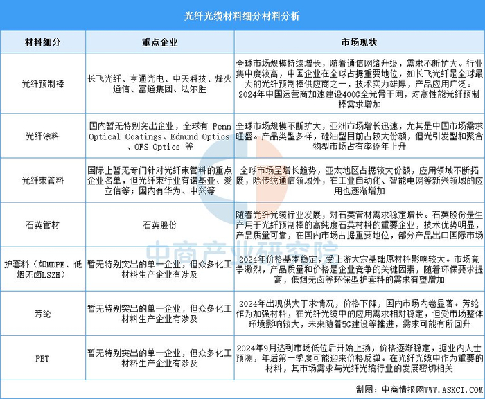 当前,光纤光缆材料处于持续变革中。光纤预制棒领域,中国企业产能提升、技术先进,实现基本自给,制备设备优化,生产效率与产品质量提高,新型材料引入,规格形状创新。光纤涂料全球市场规模稳步扩大,亚洲尤其中国需求旺盛,产品类型多样,光引发型和聚合物型份额逐年上升。产业链各环节协同高效,为行业发展奠定基础。随着5G、FTTH 等通信技术推进,对光纤光缆材料需求持续增长,前景广阔。