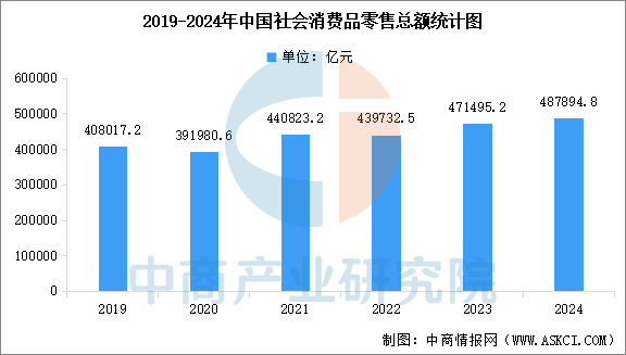 当前随着消费政策持续发力显效,我国社会消费品零售总额有所上涨。2024年,社会消费品零售总额487895亿元,比上年增长3.5%。