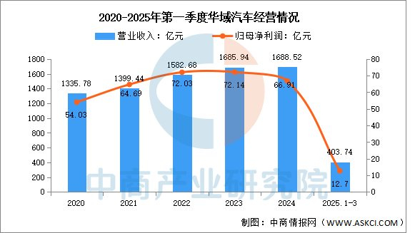 2025年第一季度实现营业收入1408.6亿元,同比下降1.55%;实现归母净利润30.23亿元,同比增长11.39%。2024年主营业务包括整车业务、零部件业务,营收分别占整体的60.75%、30.38%