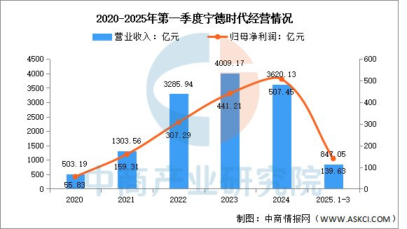 2025年第一季度实现营业收入847.05亿元,同比增长6.19%;实现归母净利润139.63亿元,同比增长32.85%。2024年主营产品包括动力电池系统、储能电池系统、电池材料及回收,营收分别占整体的69.90%、15.83%、7.93%。