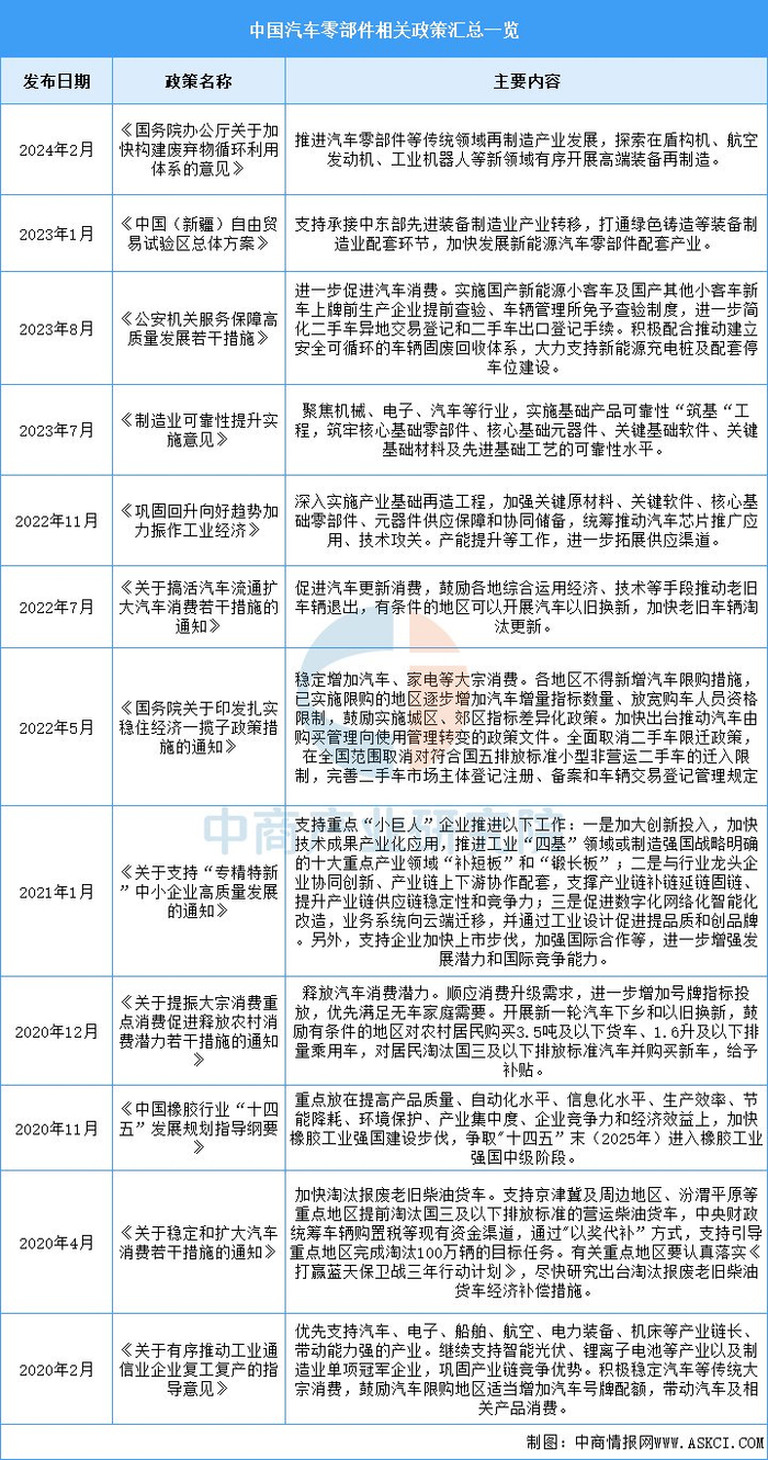 中商情报网讯:汽车零部件作为汽车工业的基础,得益于国内经济的稳步增长、国家产业政策的支持以及新能源汽车产业的快速发展,中国汽车零部件行业快速发展。